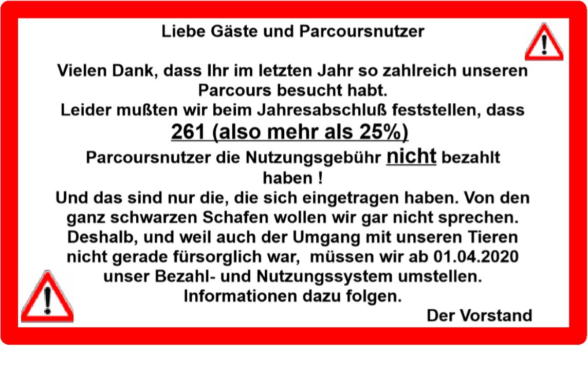 Die Nutzung des Parcours für Gäste ist nur noch mit gültiger Parcourskarte gestattet!