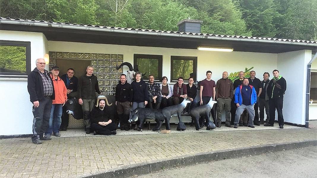 Da nun HessenForst endlich die Freigabe für die "Große Runde" erteilt hat, fanden sich am 28.04.2018 eine bisher noch nie da gewesene Anzahl von Helfern ( 19 !!! ) zum gemeinsamen Frühstück vor dem Arbeitseinsatz ein. Wie schon beim letzten Arbeitseinsatz war das Wetter perfekt und die Stimmung sowie die Motivation der Helfer bestens. Nach dem Verladen der Tiere und der Gruppen- und Aufgabenverteilung ging es dann in den Wald.