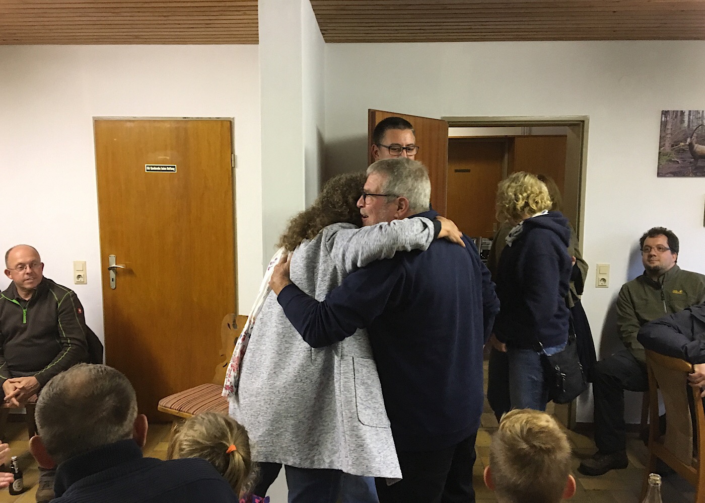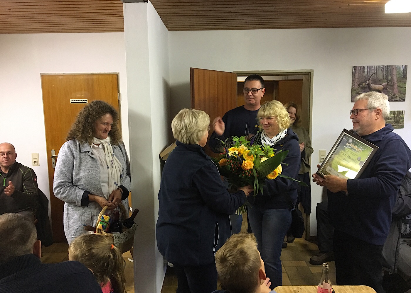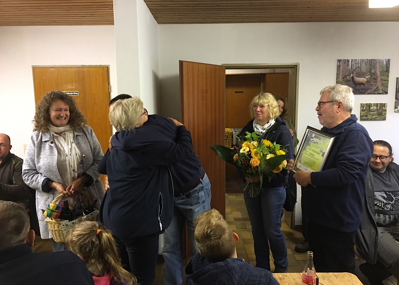 Gleichzeitig bedankte sich der neue 1. Vorsitzende, Rainer Schroth, auch bei dessen Ehefrau Ines Manske für die geduldige und aufopferungsvolle Hilfe und Unterstützung, ohne die ein solches Amt nicht zu bewerkstelligen sei. Anschließend würdigte Erich Manske in einer rückblickenden kleinen Rede u. a. das Engagement von 27 Vereinsmitgliedern, die mehr oder weniger in 400 Arbeitsstunden das doch sehr heruntergekommene Vereinshaus zu einem wahren Schmuckstück herausgeputzt und Instand gesetzt hatten. Ferner wünschte Erich seinem Nachfolger Rainer alles Gute für eine weiterhin erfolgreiche Vereinsarbeit.
