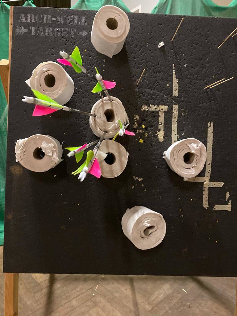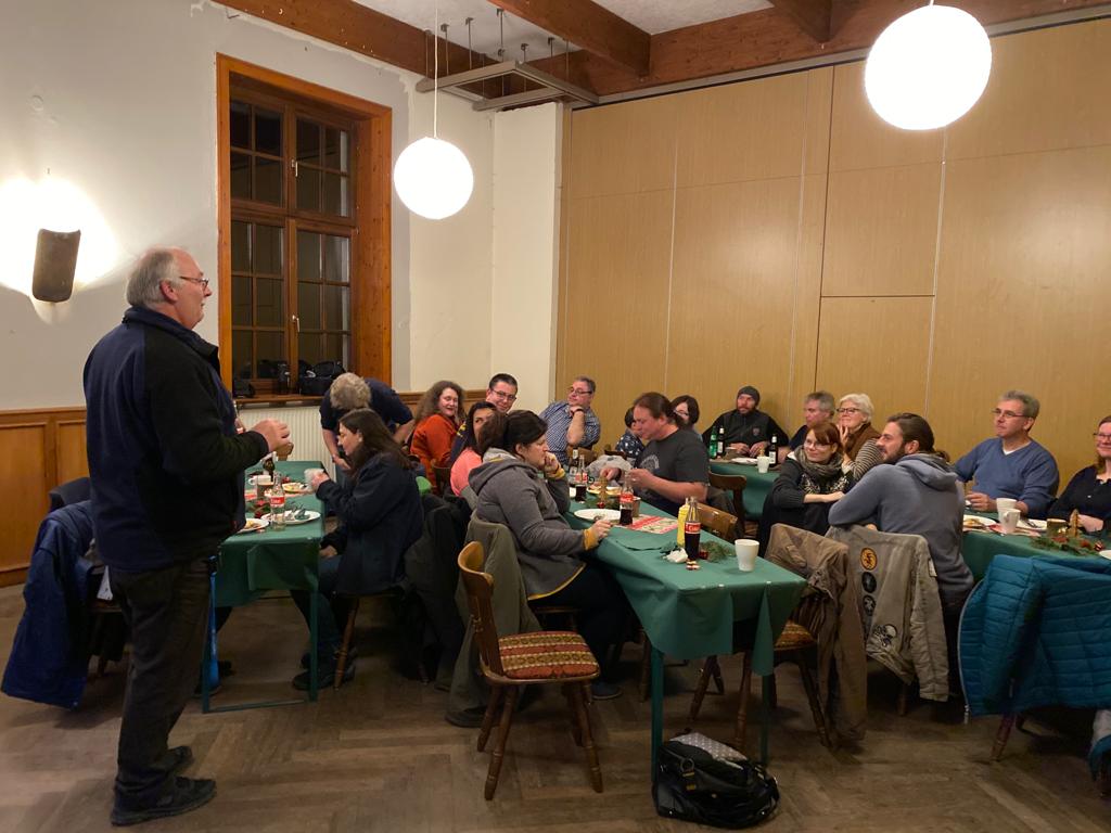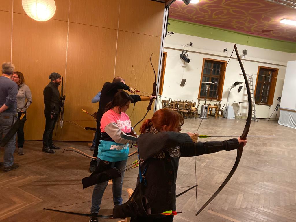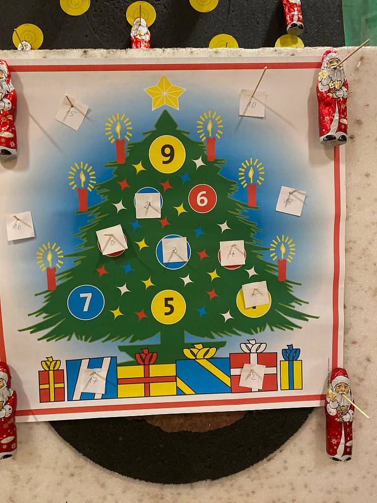 Am 23.11.2019 fand unsere jährliche Vereins-Weihnachtsfeier im König/Helsa statt. 27 Mitglieder und auch Nichtmitglieder haben sich im schön weihnachtlich geschmücktem Saal eingefunden. Bei Glühwein und Kinderpunsch sowie wieder einem tollen Essen von Günther Casselmann wurde geplauscht, gelacht und natürlich auch Bogenschießen gemacht. Mit viel Spaß wurde wieder versucht die an den Scheibenständern angebrachten Schokonikoläuse NICHT zu treffen. An der anderen Scheibe waren Klopapierrollen abgebracht. Unter diesen waren kleine Nummernzettel versteckt. Jetzt musste man versuchen das Innenteil (die Pappröhre) zu treffen. Ist dies gelungen, bekam man ein kleines, mit der betreffenden Nummer ausgezeichnetes, Wichtelgeschenk. Alle 30 gepackten Geschenke waren von mir als "Spende" eingepackt worden. Ich denke, der Spaß am "Erschießen" dieser Päckchen war größer wie der Wert dieser (-: