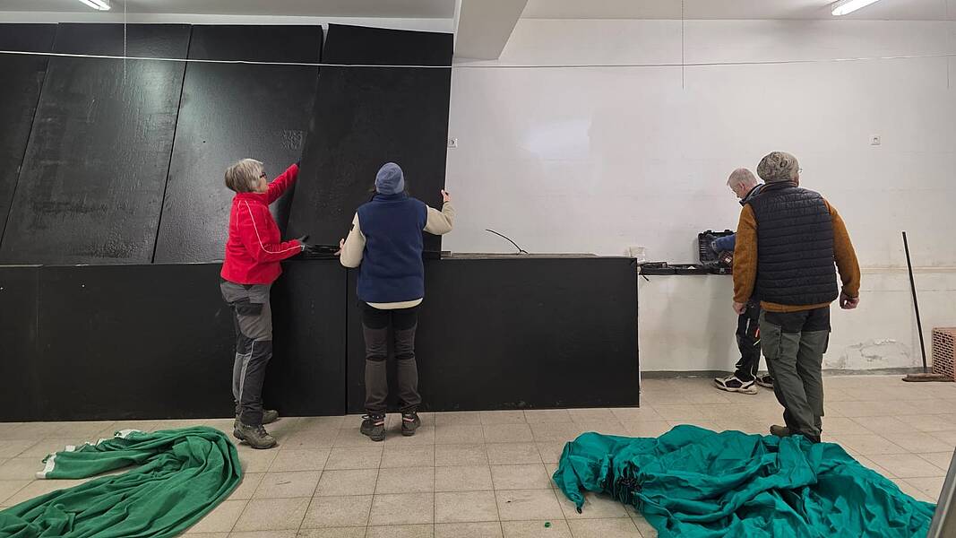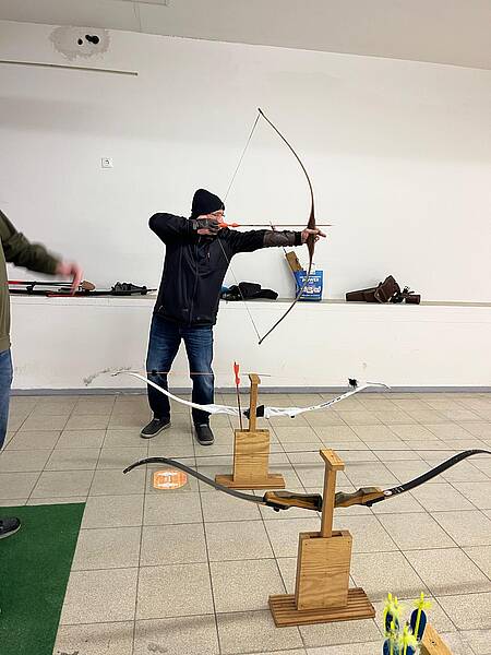 - 22. November: Viele fleißige Bogenschützinnen und Bogenschützen packten tatkräftig mit an und verwandelten den Saal in eine echte Schieß-Arena. Nun können wir sowohl auf klassische Scheiben als auch auf ausgewählte 3D-Tiere schießen – fast wie draußen im Parcours, nur eben warm und wettergeschützt