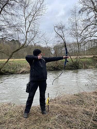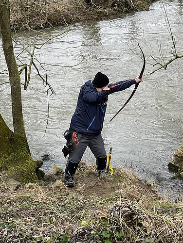 Danach führte der Weg in ebenes Gelände rund um den See und an die Schwalm mit spannenden Schüssen über den Fluß auf Hirsch, Wildschwein und Wolf, um anschließend noch einmal in den "Bergen" auf Bär, Puma und Gepard zu zielen. Insgesamt haben wir immerhin fast 10 km zurückgelegt.